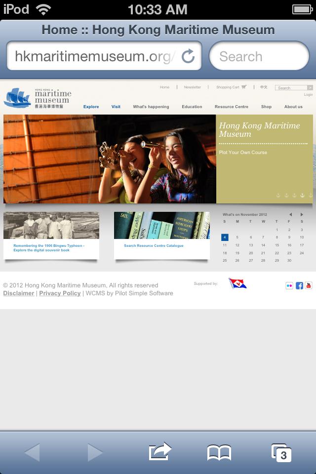 In a technology driven city like Hong Kong developing a mobile website is a natural extension of any website redevelopment project. In 2011, the Hong Kong Maritime Museum decided to upgrade its website to coincide with the museum’s planned expansion and move to a new gallery space at Central Pier 8 in Hong Kong’s Victoria Harbour.
